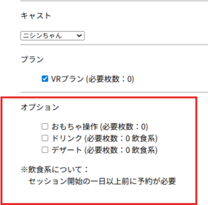 A.キャストにご相談ください。準備に時間をいただいてしまう可能性がありますのでできれば予約時にご指定いただくことをお勧めします。