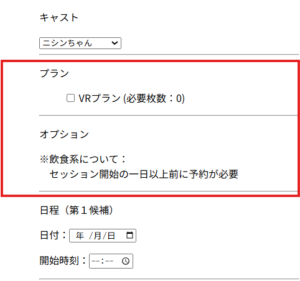 4. 備考欄にはキャストへの要望(やりたいシチュエーション、希望する衣装やワールドなど)を書いてお伝えください!