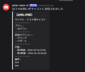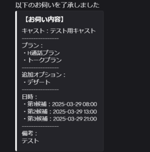 ※キャストがお伺いを了承した場合/了承しなかった場合それぞれに対して、通知が送信されます
